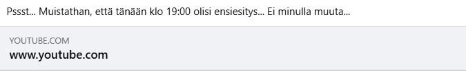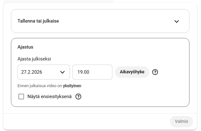 Mitään muuta selitystä en keksi, koska yllä olevassa kuvassa on helmikuun lopulle ajastettu video ja sille taas on mahdollisuus luoda ensiesitys. Että sellaista. Aina oppii jotain uutta.