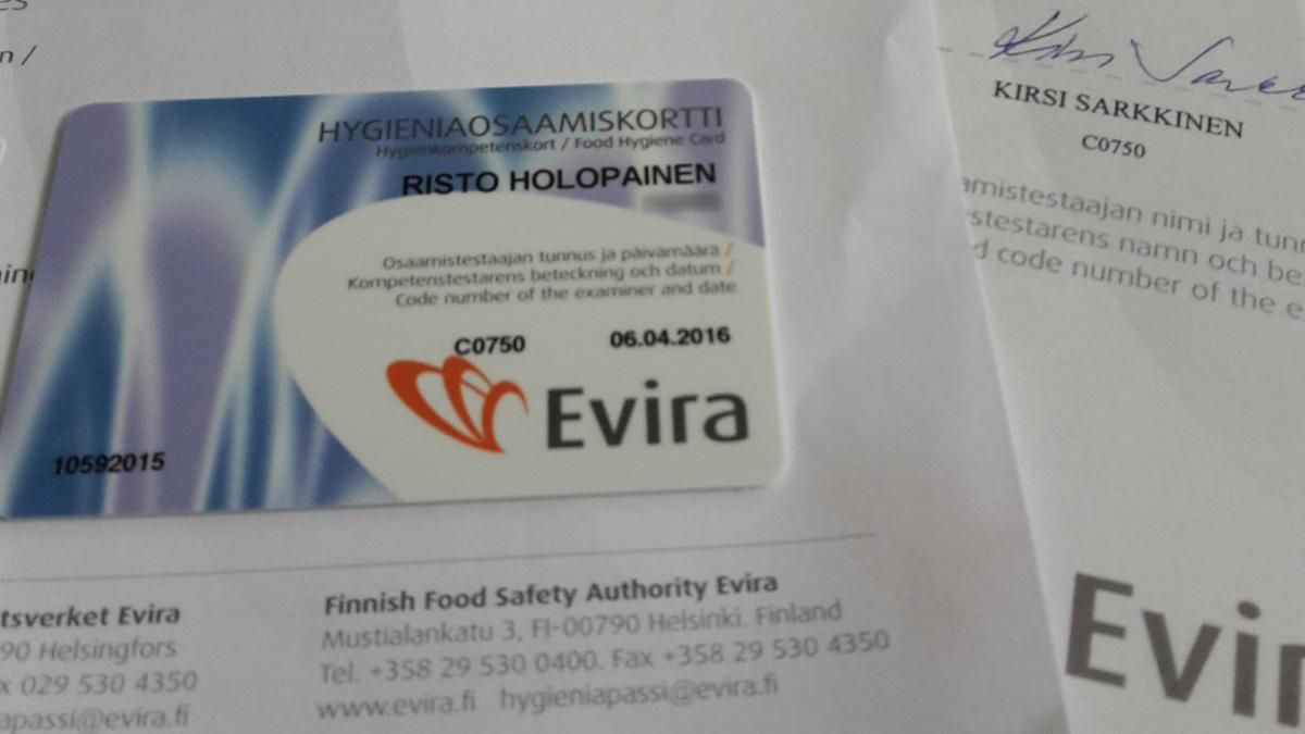 Keväällä 2016 minulle alettiin puuhaamaan palkkatukitöitä paikallisesta ruokapalvelusta. Yksi etappi oli suorittaa hygieniapassi. Läpi meni pistein 38 / 40.
