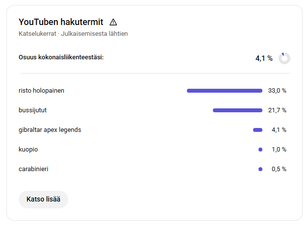 Suomenkielinen sisältö ei välttämättä heille anna mitään. Okei, ehkä he saavat korkeintaan ajovideoista jotain irti, mutta aihevideoista ovat asia erikseen. Ja kuten sanoin, niin tämä em. video vääristää kanavani lukuja, mutta en aio poistaa sitä, koska taas YouTuben-algoritmit kiittävät siitä.