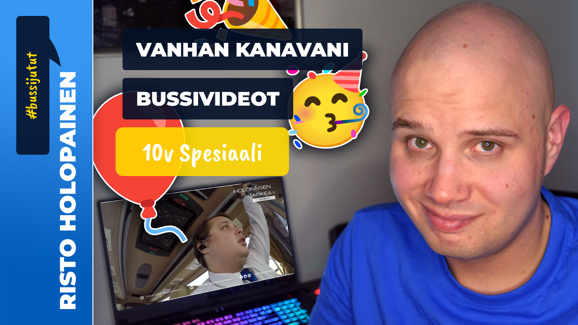 9.8.2015 tärähti 10 vuotta tubettajana. Sen kunniaksi luodaan lyhyt katsaus vanhan kanavani bussivideoihin, jotka olivat luomassa suuntaa nykyisen kanavani #bussjutuille. Videot ovat omalla mittapuullani aika gringe-matskua, jotka eivät todellakaan edusta enää nykyistä linjaustani sisällöntuottajana. Videokatsauksen lisäksi aion kertoa vanhan kanavani vaiheista sekä siitä, miten koen kehittyneeni tubettajana vuosien saatossa. Kannattaa ehdottomasti tsekata tämä video!